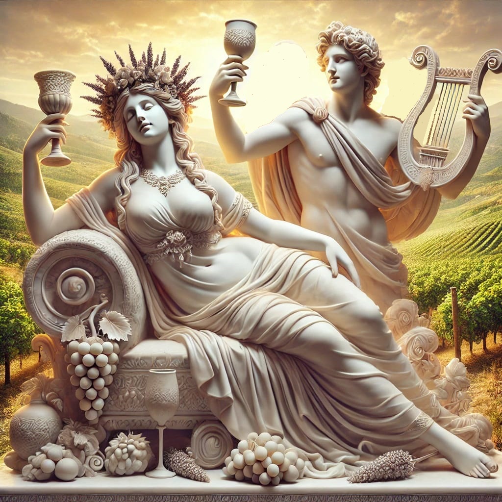 "Nechť víno nikdy není jen sladké, ale i trpké, nikdy jen radostné, ale i melancholické. Ať v něm lidé vždy cítí ozvěnu ztracené lásky." řekla Erató a dotkla se poháru